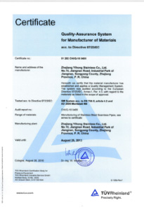 公司嚴格按ISO9001:2015《質(zhì)量管理體系—要求》、ISO14001:2015《環(huán)境管理體系 要求及使用指南》、ISO 45001:2018《職業(yè)健康管理體系 要求及使用指南》和TSG 07—2019《特種設備生產(chǎn)和充裝單位許可規(guī)則》,建立完善的管理體系。公司擁有國內(nèi)較大的12000KN冷拔機組和先進的全溫控不銹鋼固溶退火爐等生產(chǎn)設備,同時具有ET16-159渦流探傷儀、UT16-159超聲波探傷儀、UT159-830超聲波探傷儀、H159-630水壓試驗機、WAD—600液壓材料試驗機、4XB電腦金相顯微鏡、JQ—300沖擊試驗機、HBRVU—187.5硬度計、島津光譜儀、化學分析儀、晶間腐蝕試驗等完善的檢測設備。